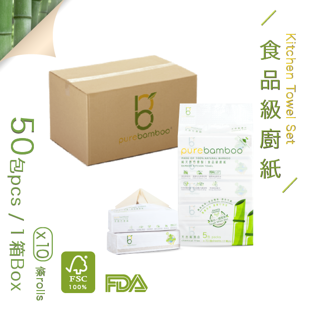 抽取式食品級竹廚紙(箱) - 50包 / PureBamboo FSC100%天然食品級竹纖維廚紙