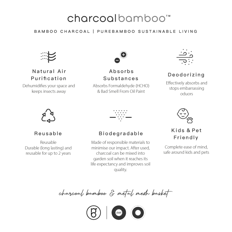 我們的無染地球天然竹炭是 #SustainableConsumption #SDG12可持續消費品,多功能的竹炭及金屬製鐵籃可被重複使用,是一個天然竹炭淨化環境套裝。