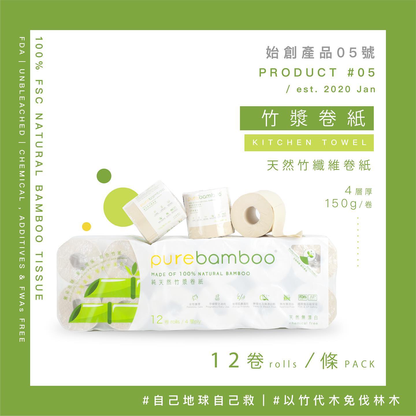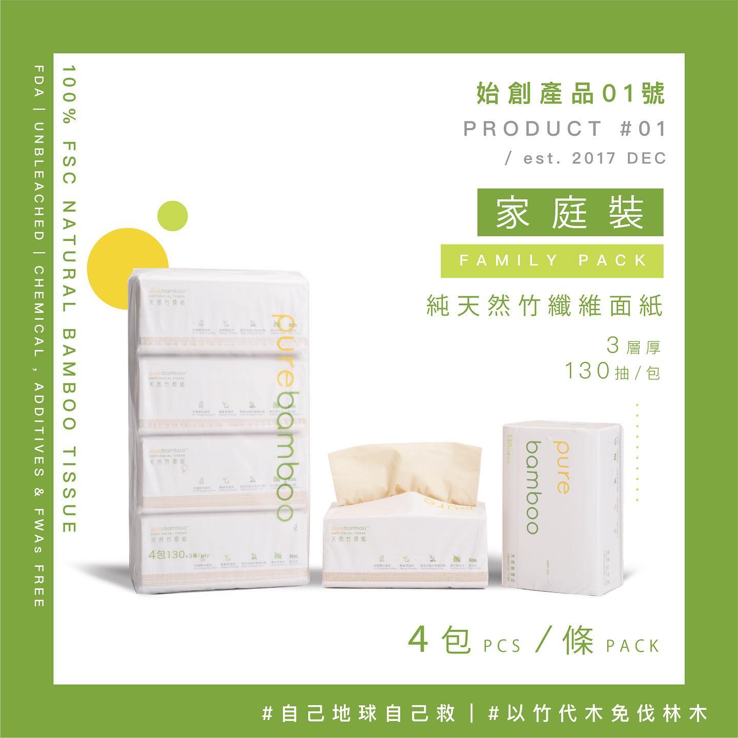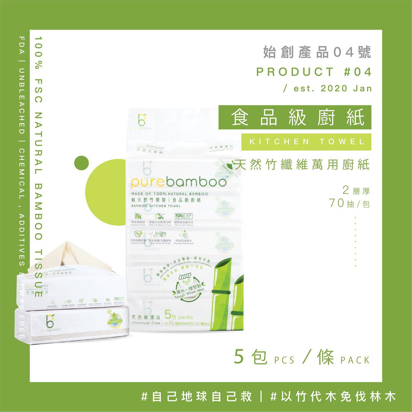 (2) PureBamboo 天然無漂染竹漿紙巾生活套裝